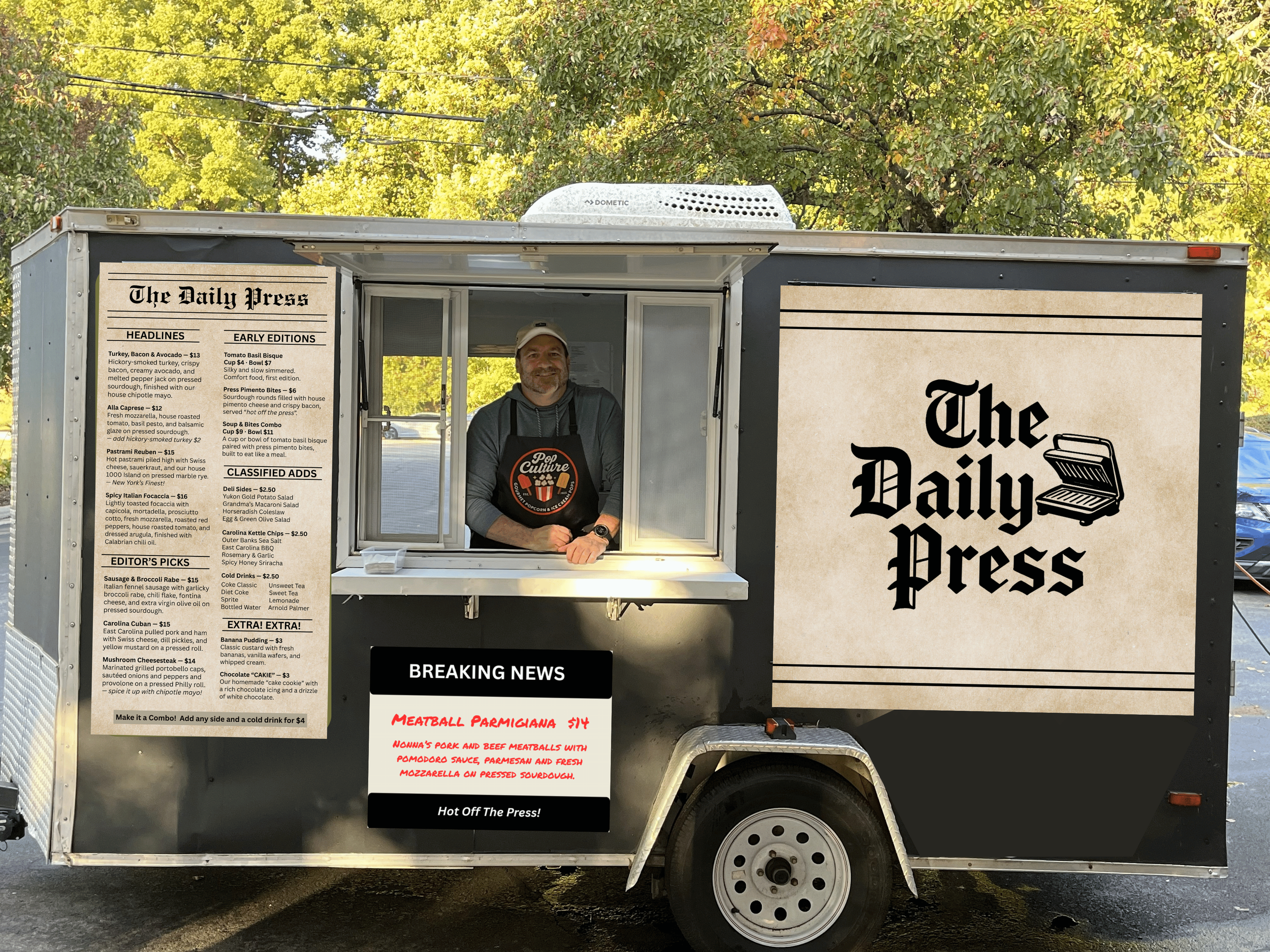 Classic deli sides, handcrafted soups, and scratch-made desserts don’t take a back seat on this trailer — every detail matters, and nothing is an afterthought.